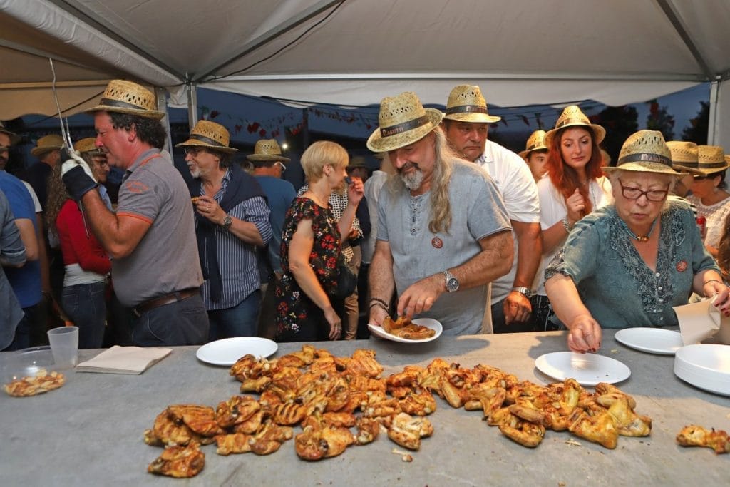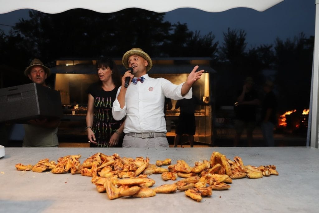 Anche se siamo stati accompagnati per quasi tutta la durata della cena da qualche scroscio di pioggerellina, le oltre 600 tra alette e sovracosce di pollo non si sono fatte attendere. I 5 grigliatori professionisti hanno sfoderato le loro armi migliori per dare gioia ai nostri palati.