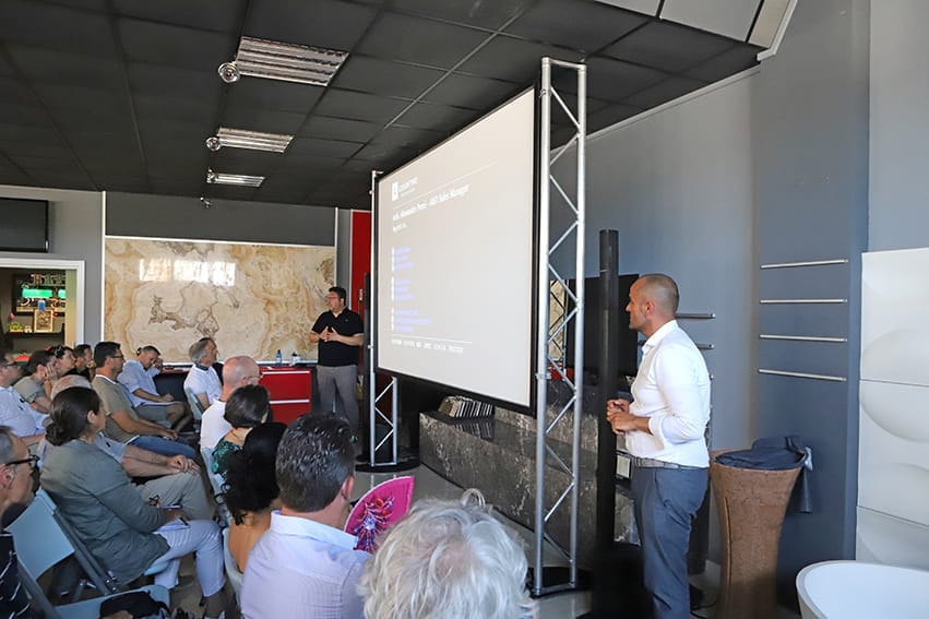 L’incontro aveva lo scopo di presentare e spiegare – agli operatori del settore – qualità, caratteristiche tecniche e pregi di 2 tra i più innovativi e conosciuti materiali per il rivestimenti di interni ed esterni: Dekton e Laminam, appunto.