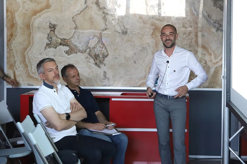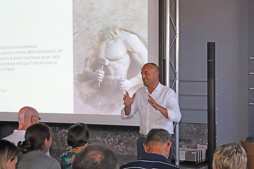 In veste di relatori, l’Arch. Alessandro Penzi (Architect and Design Sales Manager Italy c/o Cosentino Group), l’Ing. Gabriele Giorgi (Project Management Engineer c/o Laminam S.p.A.) e Francesco Del Fiol (Responsabile Area Tecnica c/o Masutti Marmi e Graniti S.r.l.).
