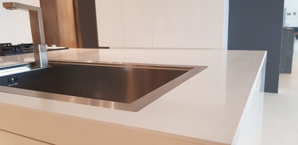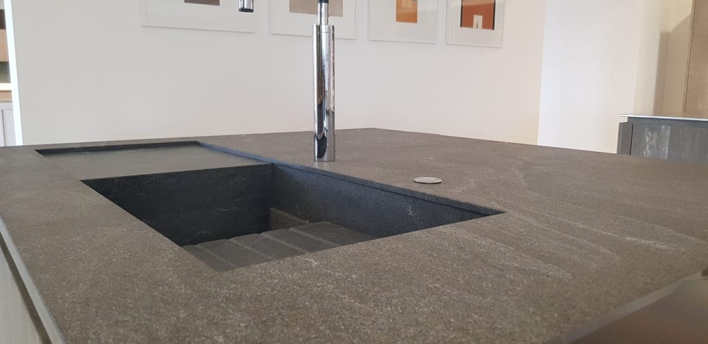 Caratteristica principale di una zona lavaggio “INTEGRATA” è la sua massima flessibilità di customizzazione , per dimensioni, profondità e design sono create su disegno specifico del designer che lo adatta alle esigenze finali del suo cliente. Serve chiaramente tener conto della tipologia delle basi sottostanti, degli scarichi e dei possibili elettrodomestici che si possono inserire e accostare -come ad esempio la lavastoviglie – oltre alle caratteristiche del materiale stesso.
