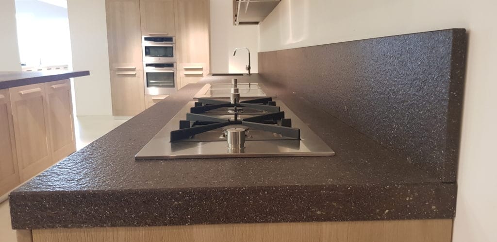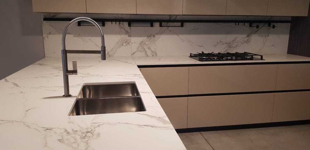 Si possono appoggiare anche nel retro del piano cottura e del lavello; pochi centimetri aprono un mondo immenso, immaginare di poter installare anche tutta una serie di canali attrezzati nel fondo del piano verso lo schienale; oltretutto con i piani ceramici in quarzo, marmi e graniti che non temono l’acqua si ha la possibilità di creare soluzioni personalizzate, con porta coltelli, porta spugnette, porta mestoli, portaspezie e molto altro ancora.