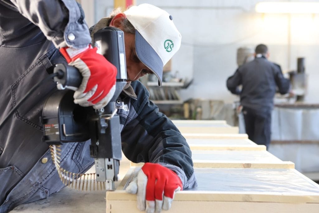 Siamo all’ultima tappa – la sesta fase – e all’ultimo controllo qualitativo, quella dell’imballo e pulizia del manufatto. Qui opera Marcello da oltre 25 anni, il quale prima fa un controllo generale ulteriore dimensionale (i controlli dimensionali sono molteplici, ma l’errore non può esistere il millimetro fa spesso la differenza tra un buon lavoro ed un eccellente lavoro), poi pulisce il piano completamente per verificare se esistano imperfezioni.