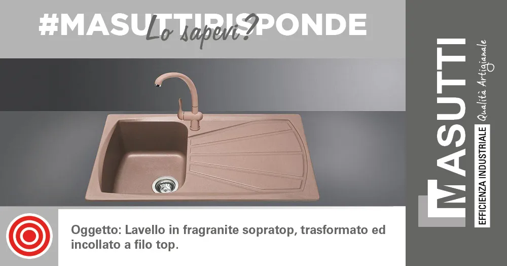 Questa comunicazione ha lo scopo di informare che l’attività di trasformazione di un lavello in Fragranite, da lavello con caratteristiche sopratop a lavello filotop con incollaggio da parte dei nostri addetti, verrà a breve codificata e inserita a listino Masutti e, di conseguenza, anche all’interno del nostro Preventivatore online.
